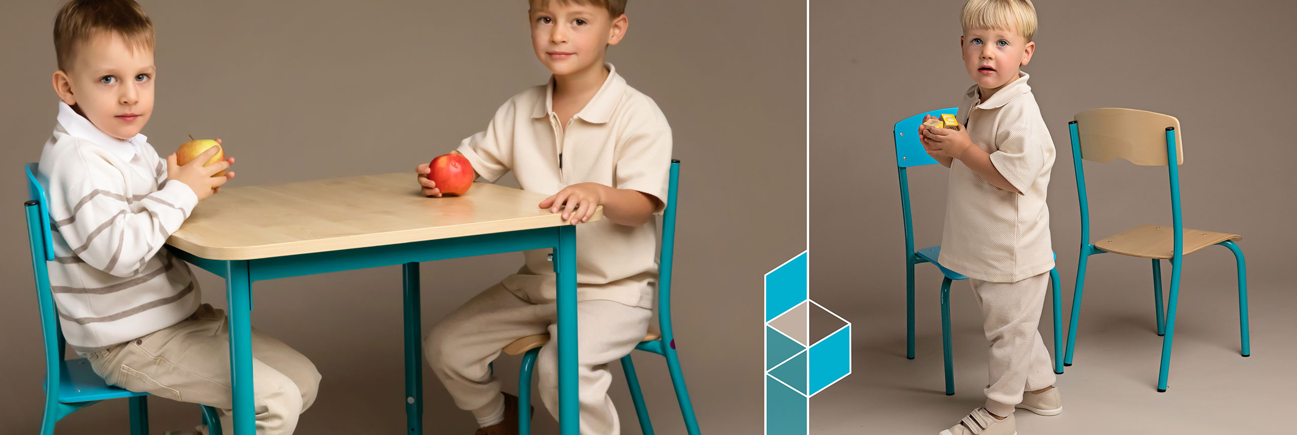 Flagowa seria BAMBINO zachwyca różnorodnością kształtów i kolorów. Stoły przedszkolne dostępne w wariantach trójkątnym, okrągłym, kwadratowym, prostokątnym i sześciokątnym umożliwiają tworzenie kreatywnych aranżacji przestrzeni, dostosowanych do różnorodnych aktywności edukacyjnych i zabawowych.